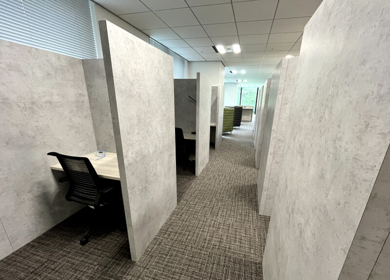 当社のオフィス内の個室ブースは、集中して作業を行える環境です。短時間の利用や集中力が求められる作業に適しており、快適にご利用いただけます。